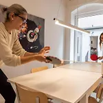 Cozinha equipada com máquina de café/chá, refrigerador e utensílios de cozinha estão entre as comodidades auto-suficientes fornecidas. O Scandinavian Loft Duplex -50Sqm- Near Antonplatz de 49 m² está a 40 minutos de carro do aeroporto de Berlim. Os hóspedes podem relaxar no seu pátio.